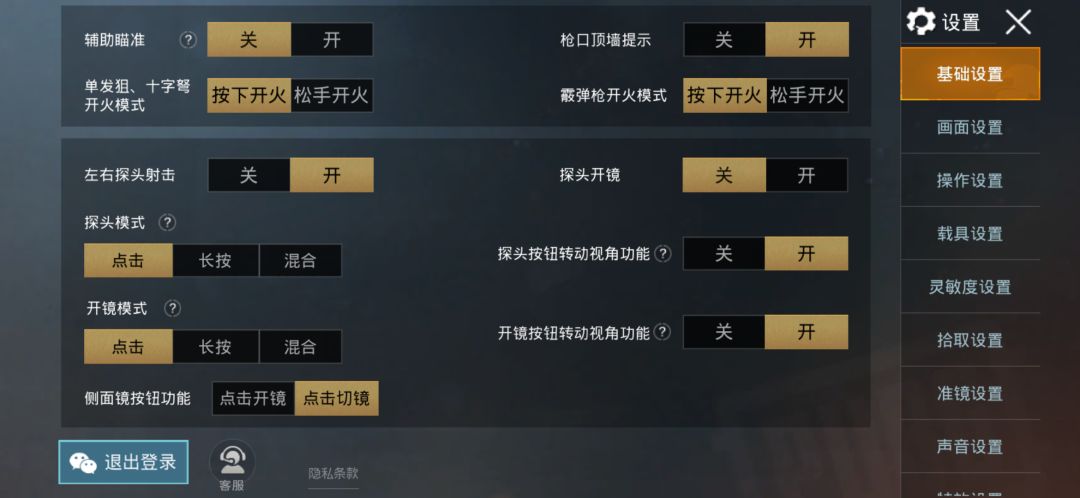 我认为游戏设置是最基础的吧。所以我打算从基础的慢慢来讲。我讲一些重点的,像那些长按还是单按这个纯属是个人因素,我就不讲了(虽然以后还会讲的,只是在这边不算重点,不提)。 辅助瞄准,通常都不会开这玩意。就新手的时候会开。主要的问题是它会瞄准身体。后面近战,通常都是打爆头线;打狙,能尽量打头就打头,不过要看距离。 探头开镜,以前我开了这个很长一段时间,后来发现其实是不好的。为什么,因为很多时候探头是没