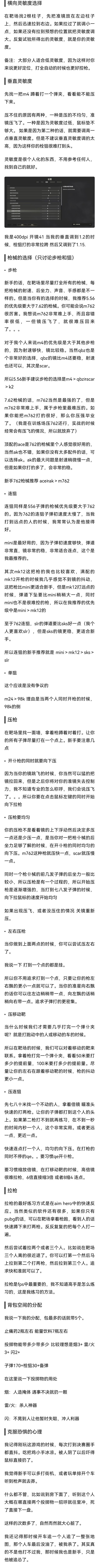 1.98k——宝刀不老 要说谁是狙击枪里的元老,那毋庸置疑是98k。这把枪手感极佳,并且非空投获得,所以也很适合新手上手练习。 伤害方面则是重狙里最低的,但是——即使是三级头一枪也可以只剩一小些血量,补一下或者步枪补三枪左右就OK了。 满配:消音+八倍镜+子弹袋,(子弹袋能加快换弹,托腮板减少后坐力的属性对于连狙很重要但对于重狙没啥用。) 小技巧:在打击远距离目标是略微上抬准心。具体数值大概为:1
