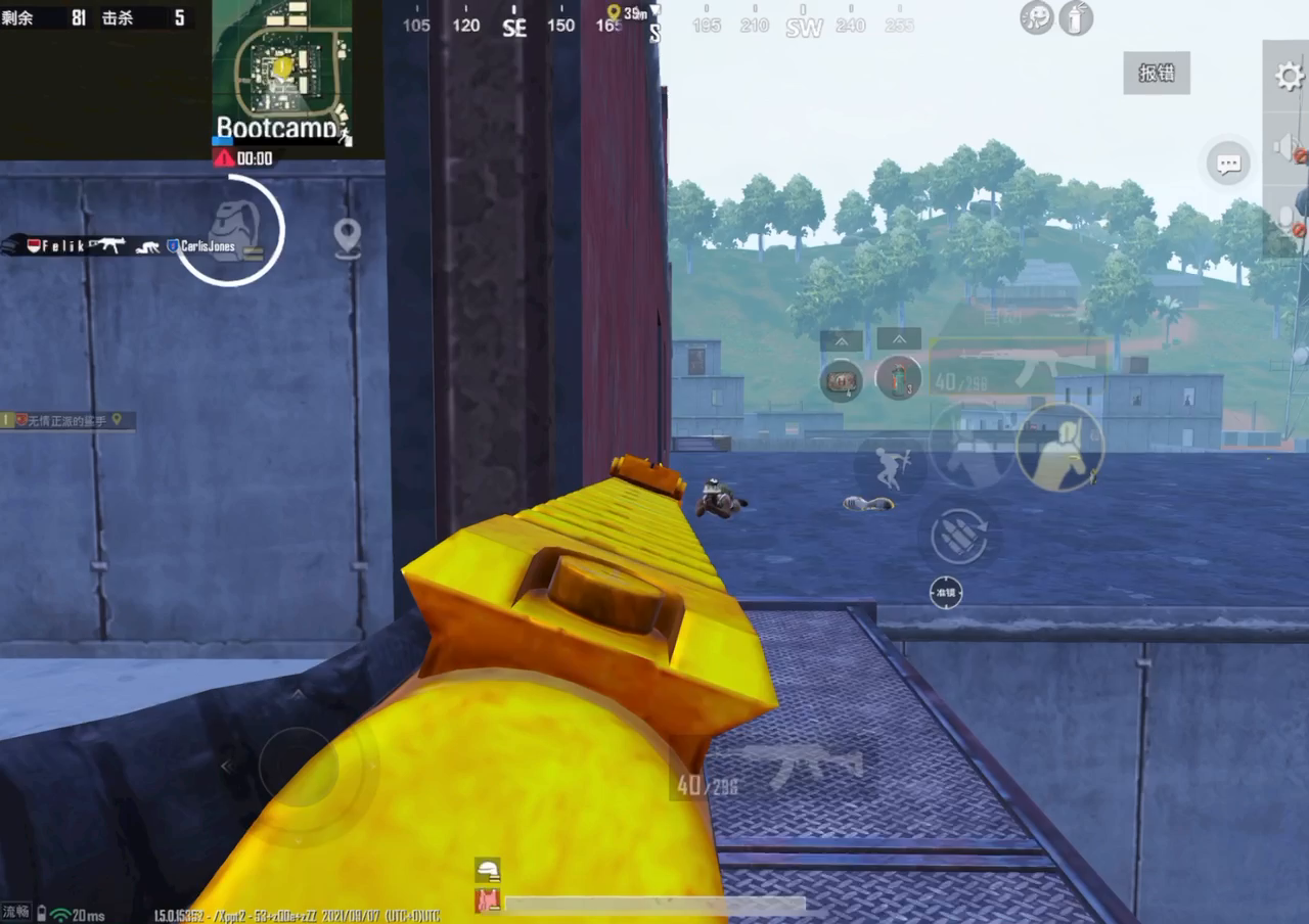 他应该是从机场出来的,我当时在桥头卫星楼山下,一路追着我打,从他出现我就频繁开始掉线,完全动不了,网络延迟。重启了两次游戏,像这种之前遇到数十回,网络绝对是没有一点问题,就是有些挂出现就会这样子。我一直没看到他人,但子弹打过来明显感觉不正常,我也一直找不到他人,打得我只剩三个绷带,鱼死网破的想法,先溜到桥对面反卡,最后一丝血还是打死了这个死挂逼。