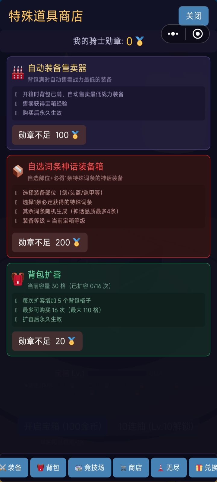勋章金币装备宝箱竞技场进度全清空,只有无尽爬塔的进度保留了