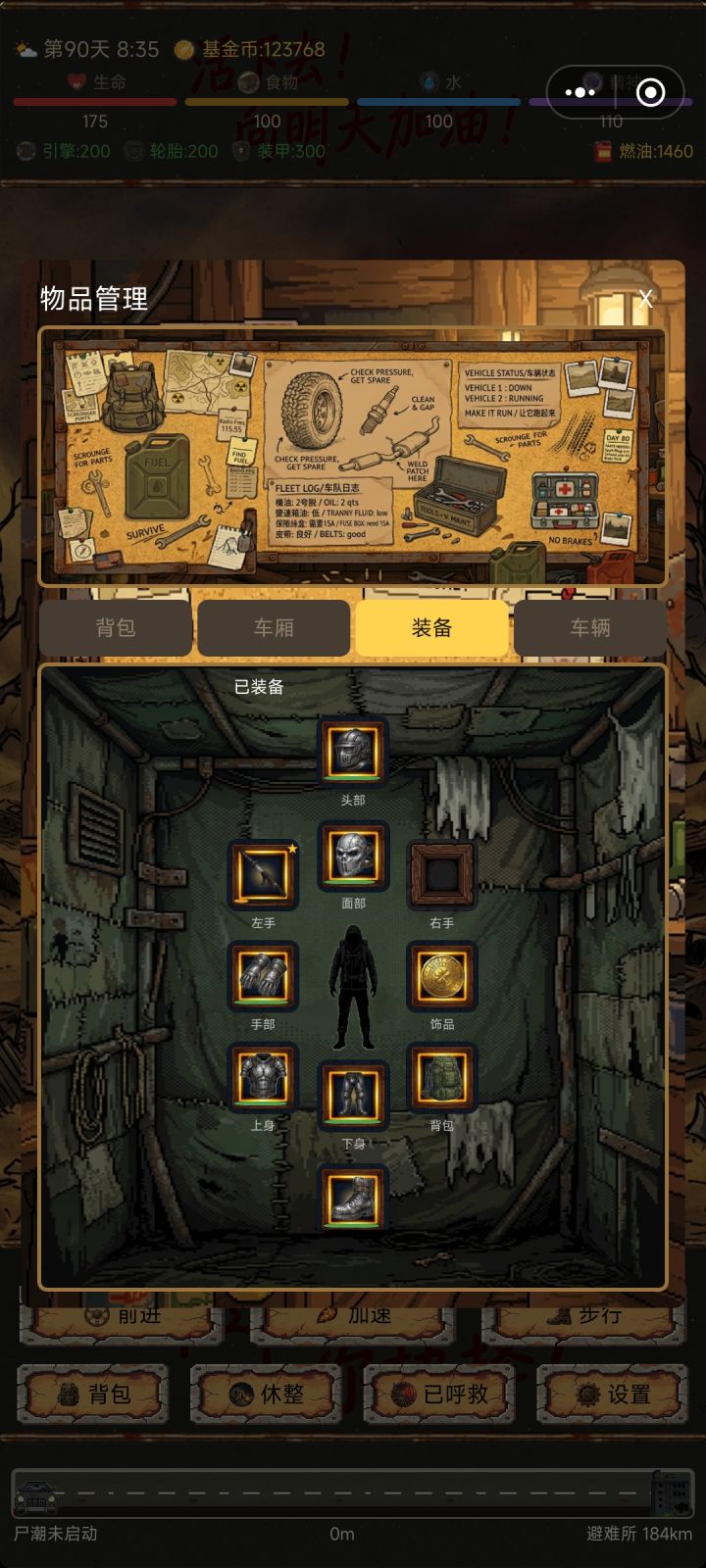 只要我跑路的过程捡垃圾收入,可以维持得了修车。看好精神尸潮一般追不上,现在基金币越玩越多有一说一这游戏装备看不出有什么作用。我看到僵尸就跑路,不是打不过而是没什么收益。活着最重要末日生存就一个字苟着