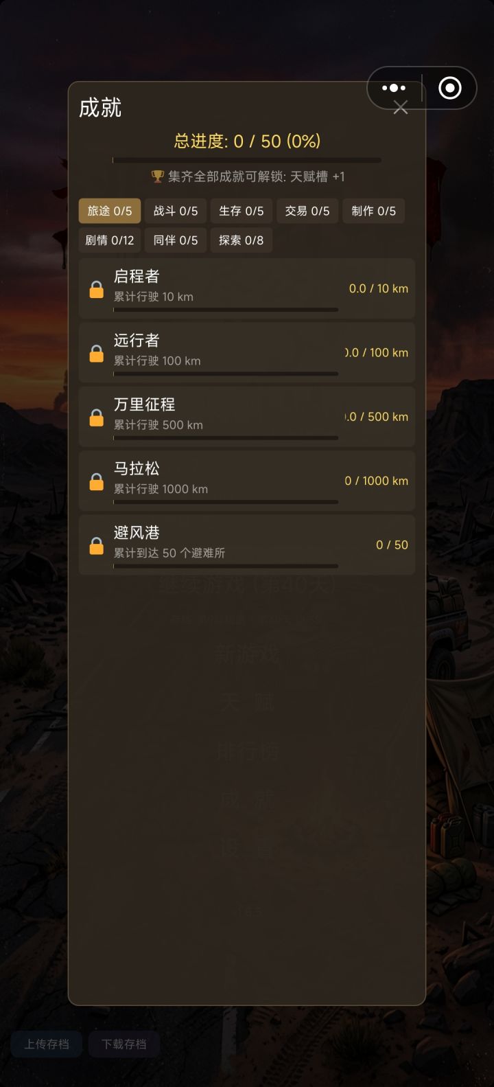 天赋必选商人有效降低前期难度 另一个可以选井井有条或者是赛车手别的也可以看自己喜好选都行开局就加速途中可以搜刮但遇到敌人就跑因为基本打不过 遇到木头挡路不用拆因为费时间铁可以拆一下 遇到商人无脑买油高于11的先不买然后就是吃喝都买最下面的够吃就行 然后等尸潮出来了看情况还要不要加速 因为开局自带两个钢丝网能拖一下 前期没有加精神的东西睡一次觉尸潮能追四公里左右 然后就是快到避难所了可以弃车把重要