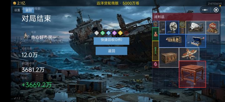 今天正常在玩,前面几局都还好,直到卡两局心态直接崩了,最开始第一次卡的时候我没注意,直接退出重新进,没注意金币(可能是因为玩的比较小所以没发现),玩了一局再开始一局又卡了,又退出,再进一局出价的时候就发现钱只有1000万了,瞬间心态崩了,我的2亿呢?!