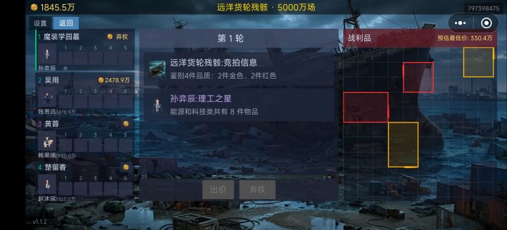 今天正常在玩,前面几局都还好,直到卡两局心态直接崩了,最开始第一次卡的时候我没注意,直接退出重新进,没注意金币(可能是因为玩的比较小所以没发现),玩了一局再开始一局又卡了,又退出,再进一局出价的时候就发现钱只有1000万了,瞬间心态崩了,我的2亿呢?!