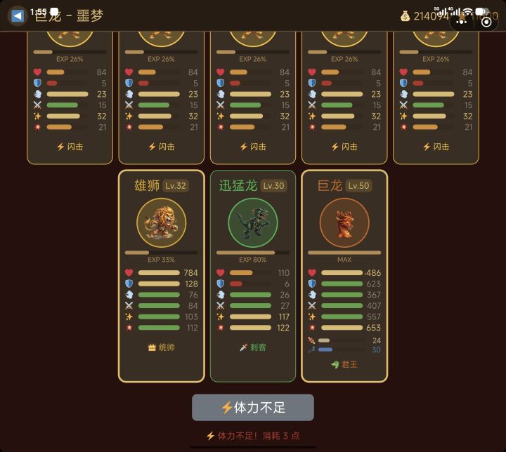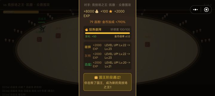 4.整个游戏的数值,怎么说呢??前期装备提高的数值极大!!我买了狮子,熊,老虎以后,第一件事情就是给他们买一套传说装备。。然后有钱了就升级装备,竞技场没输过,包括打竞技场之王!!没挑战性。