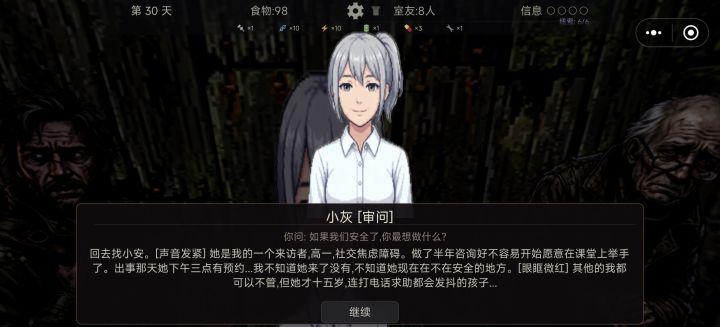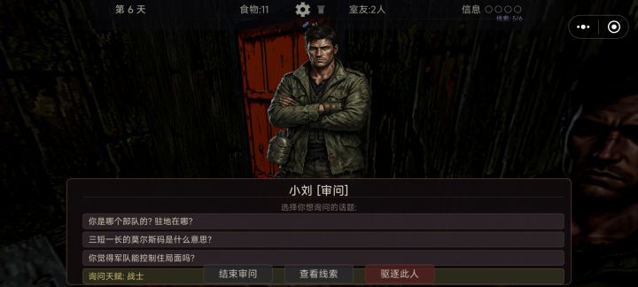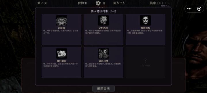 轻度冒险游戏,没做基础操作介绍,摸索下上手并不难。每天白天会有伪人假装幸存者来敲门,从外观或言谈举止上可以进行分辨,选择是否让其进屋。即便真的放伪人进来也不会在一夜之间挂掉,审问可以问出更多细节,也可以查看伪人的特征线索,即便有天赋也有可能是伪人。还可以多人开会讨论,然后进行驱逐,容错空间给得很足。