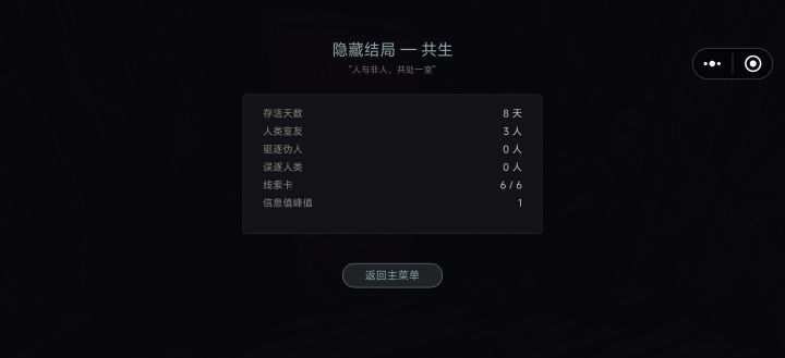 通过反复游玩,前前后后累计有个1个半小时左右吧,一共出现了12个结局。1:主线剧情结局A《黎明》很好完成,就是不放伪人进来,这一周目遇见真人较少,达到第七天完成。2:主线剧情结局C《注视》这个触发条件就是放一个伪人进来,其他人不要放,等到右上角信息危险值拉满了,就触发了。3:主线剧情结局D《禁闭的门》这个触发条件就是放人进来,无论是真人还是伪人,让他们出去搜索食物的同时,驱逐他们,在结