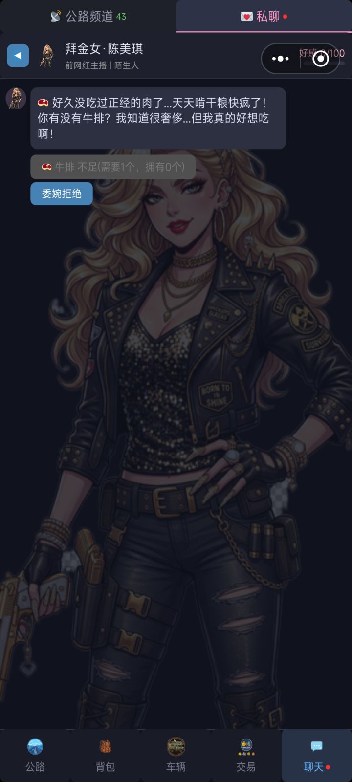 1.首先是大家关心的闪烁问题,我测试已经修复了,背包里面有必要的刷新可能会有部分闪烁2.车里页面重改升级,房车内部更加沉浸,角色会自己根据时间在车内做不同的事情,大部分还有生活照哦3.背包商场页面优化,新加分页功能,进一步提升性能和减少卡顿4.随机事件优化新加,加入吃醋争吵事件,一些事件配上图片5.优化轮回大厅的天赋提示效果体验感爆棚,赛博老婆马上就活起来了注意:版本更