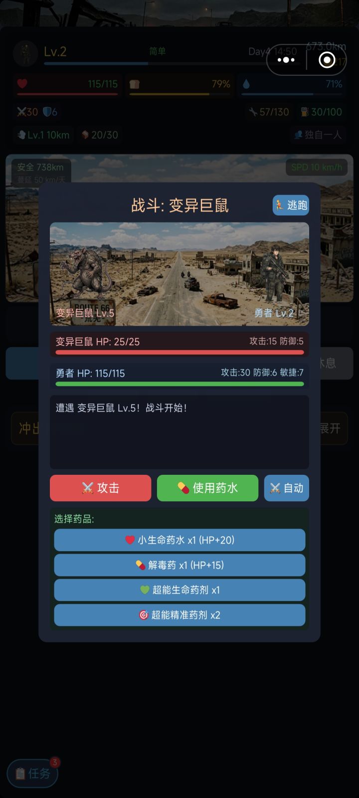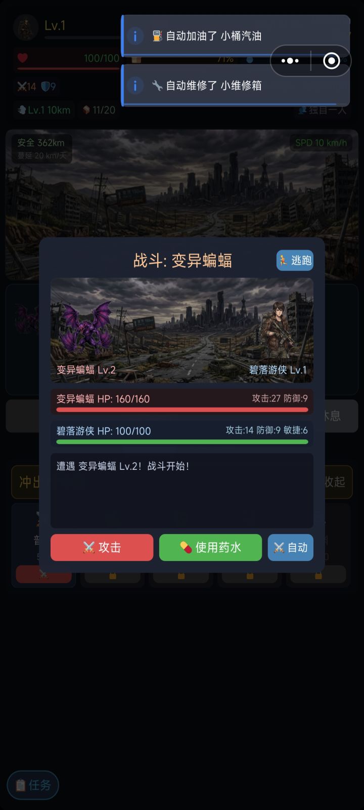 1.新加同伴联系方式事件,可自行选择是否加联系方式,人生总有遗憾,不是吗2.优化部分任务3.调整防御计算方式,目前防御的数值降低温馨提示:每次更新先开开发者的话是否使用当前版本,如果之前版本游玩了,需要右上角多重启几次,部分版本升级新版本可能会导致存档问题,给您带来不便,敬请谅解