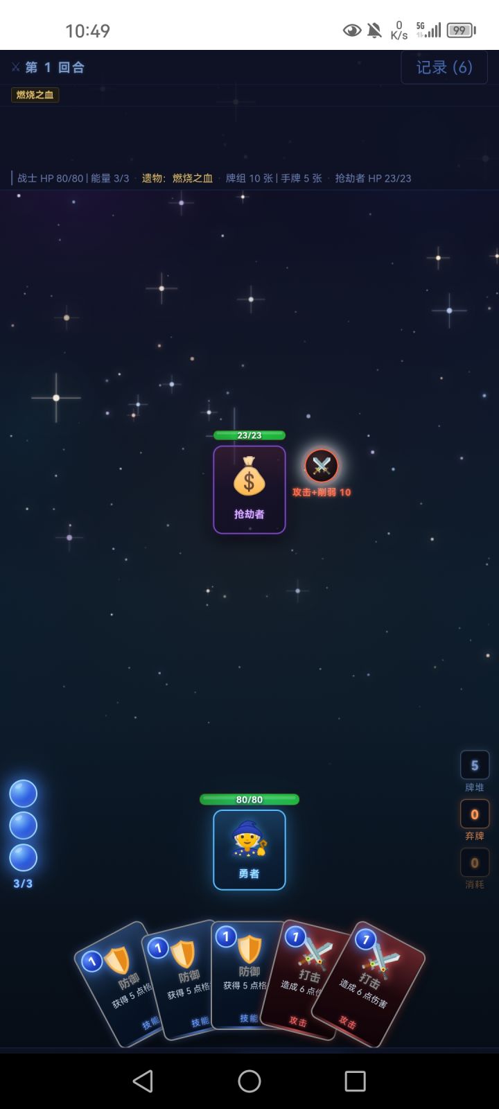 1.进游戏后那个背景图颜色能不能换下,太暗了,再加上每个格子之间的连接线太小太细,有时候想走特定路线,结果那里是死路,无奈只能随便走。2.不知道啥原因,出现过好几次那个能无限升级的卡牌,升级一次后下次去营地就看不到他了没办法升级。点查看也没这张卡了3.战斗界面内卡牌说明的字显示不全,建议增加长按显示卡牌说明在屏幕中间,另外药水的说明也是,直接长按显示说明就好,别在设置里增加一个用药确认才能显示
