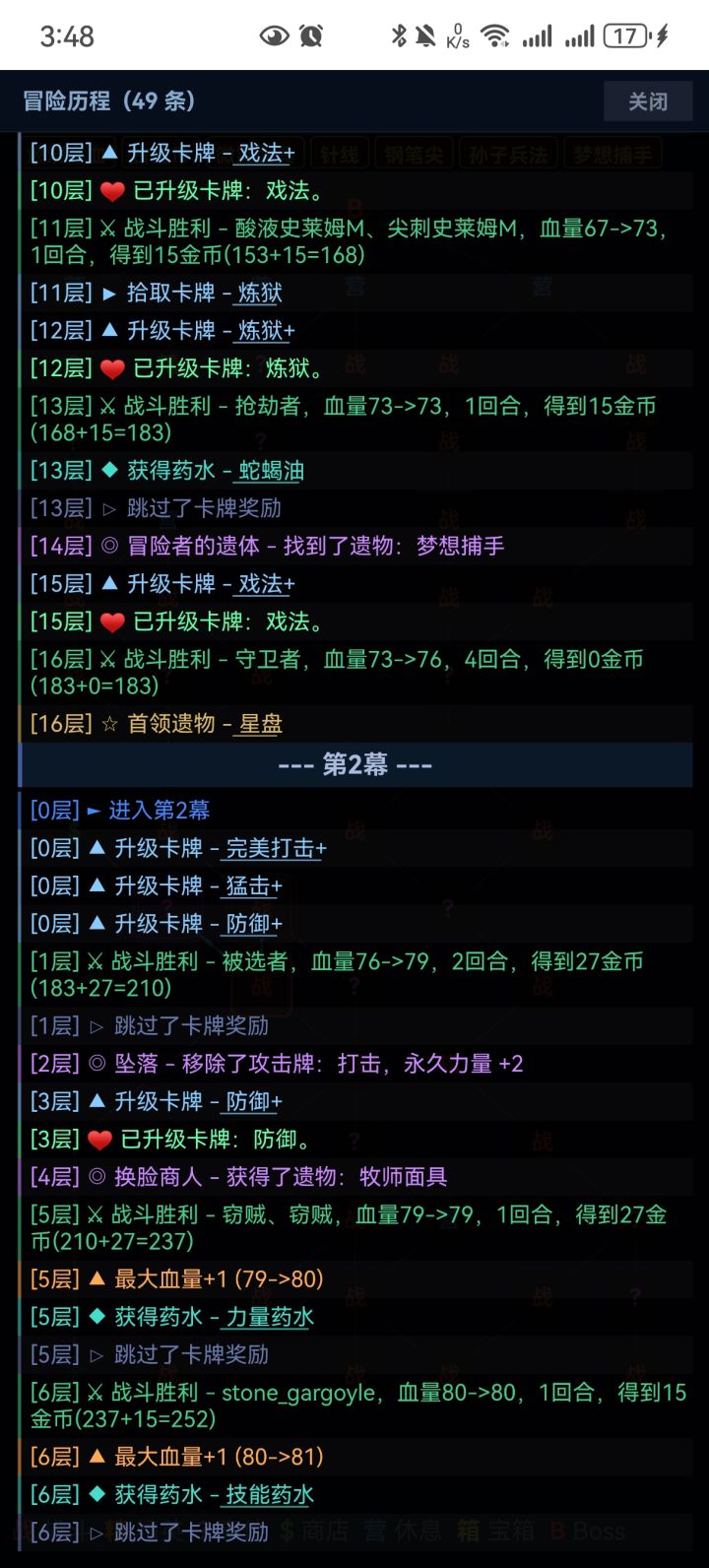 低难的数值相对简单,烧牌几张敲完仍随机不稳定难构成循环,但是其他数值够用,不建议攻哈输出推进斩杀,数值要求不够,靠虚弱和大量格挡的防哈熬易伤+爆发比较容易,但是盾击本身数值也两极化,一部分怪高攻叠不起来,一部分塞卡无视盾实际伤害也高。这边推荐旋风斩。一把93金,建议开局先sl一张能量牌携带再开游戏,升级还是以提升携带量优先,低质牌太多,另外本游的删卡费用比较友好,诅咒事件可以多碰碰,虽然遗物的收益
