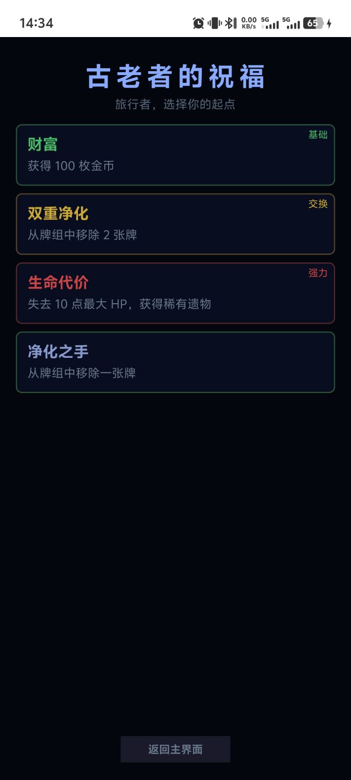 1.进游戏后那个背景图颜色能不能换下,太暗了,再加上每个格子之间的连接线太小太细,有时候想走特定路线,结果那里是死路,无奈只能随便走。2.不知道啥原因,出现过好几次那个能无限升级的卡牌,升级一次后下次去营地就看不到他了没办法升级。点查看也没这张卡了3.战斗界面内卡牌说明的字显示不全,建议增加长按显示卡牌说明在屏幕中间,另外药水的说明也是,直接长按显示说明就好,别在设置里增加一个用药确认才能显示