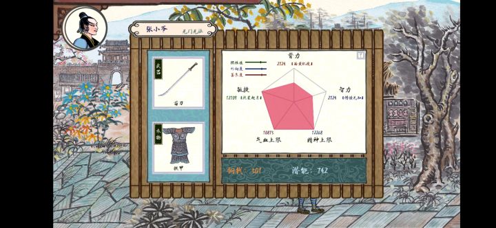 第二步,买装备。别管能不能用买了再说,武器衣服每样一件足够了,但是各种吃食要多买点,比如说镇店之酒,野山参,毛尖等等,低等级的也要买点要不然前期发育不起来哦。(当然了,你可以货比三家,衣服县令那里便宜,吃的小酒馆便宜哦)
