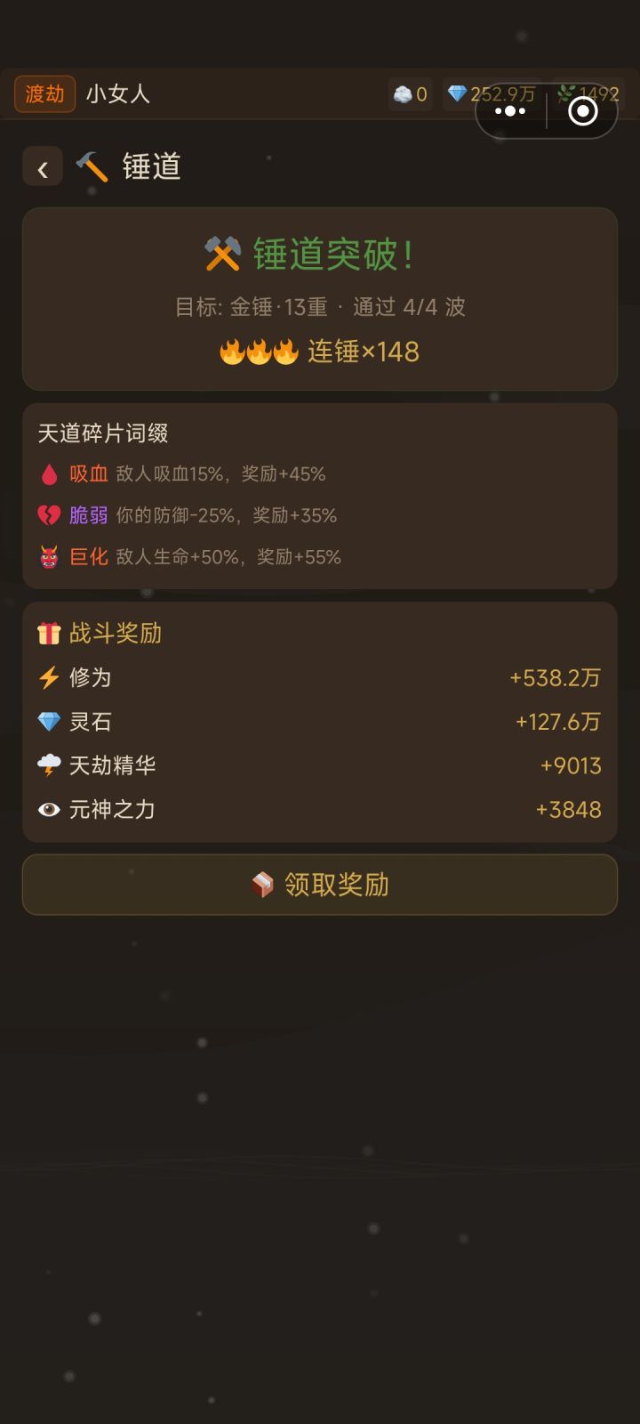 锤子钻石奖励依然是那么多,100+层钻石昨天钻石一个小目标的数量