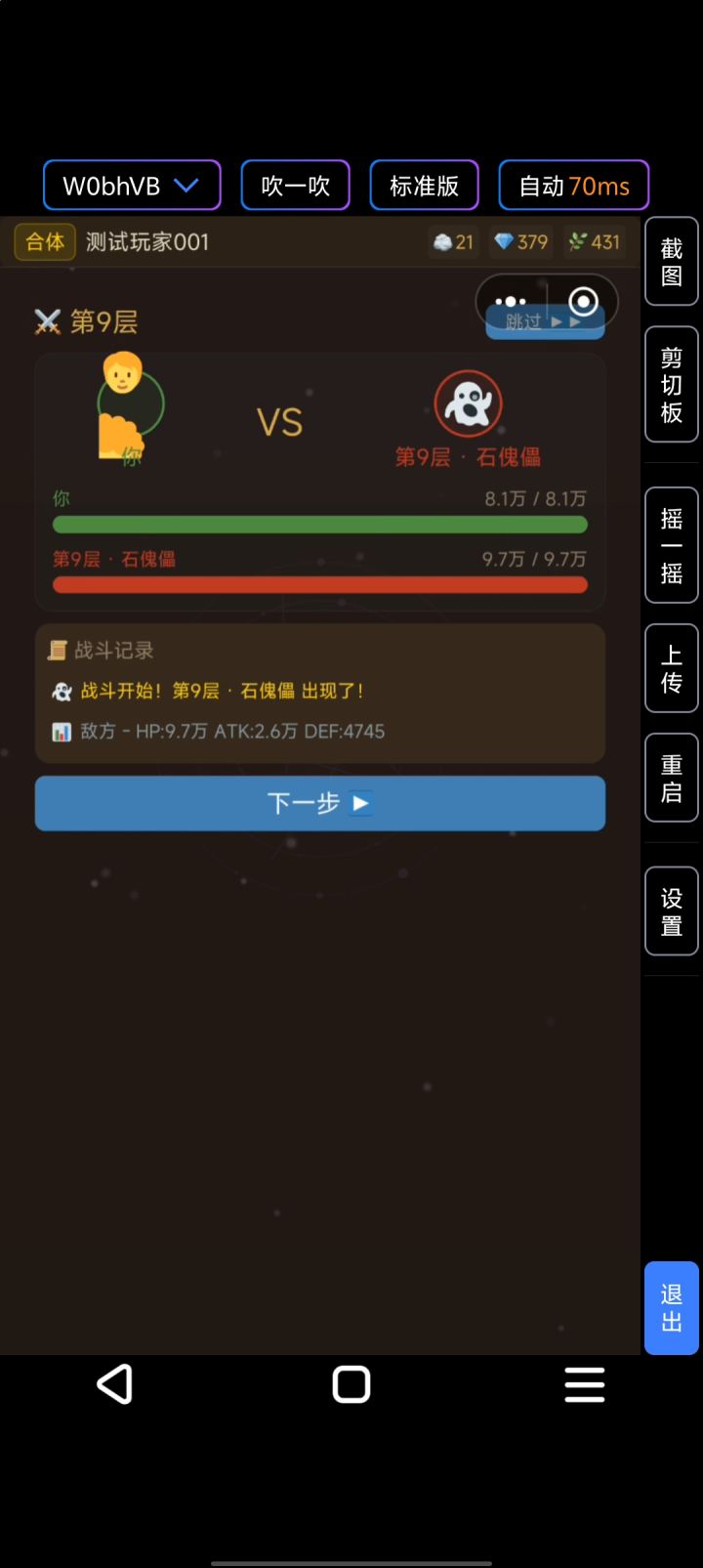 这个跳过按键,我用主设备跟云机都显示会充电容易误触退出游戏,请作者大大有待优化。