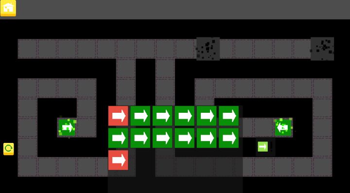 游戏需要在已给出的箭头方块纸上引导箭头连接传导,直至黑色像虫洞的终点,然后每一关还会给玩家不同的箭头方块,或者是别的方块用来辅助通关。点击给出的方块放进通道中,再次点击便可以改变箭头的方向,再点击开始按钮就可以通过箭头的方向来引导控制传递的方向。在不断的游玩的过程中,后续的有一些关卡也会出现特定的障碍物,或者需要相互抵销或者是思考箭头移动的顺序安排,以防多个箭头,同时相撞相互抵消。