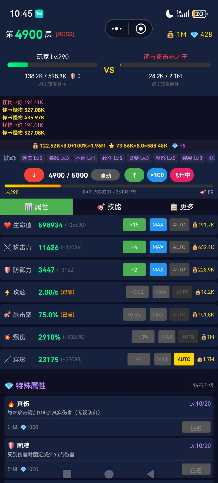 改版后只剩下爆伤属性能冲高层了,怪动不动就是千万攻防破甲,无敌+连击暴击才能稳定升层