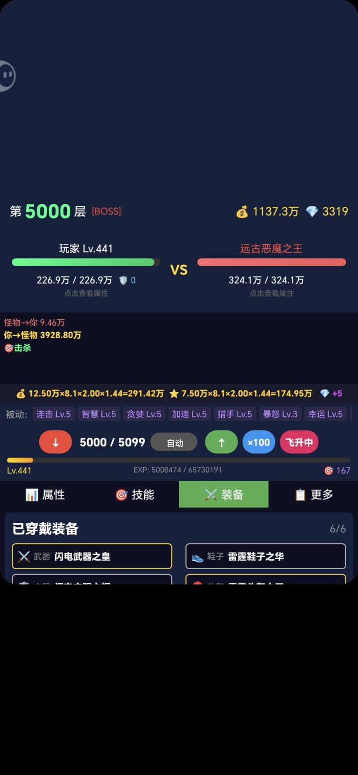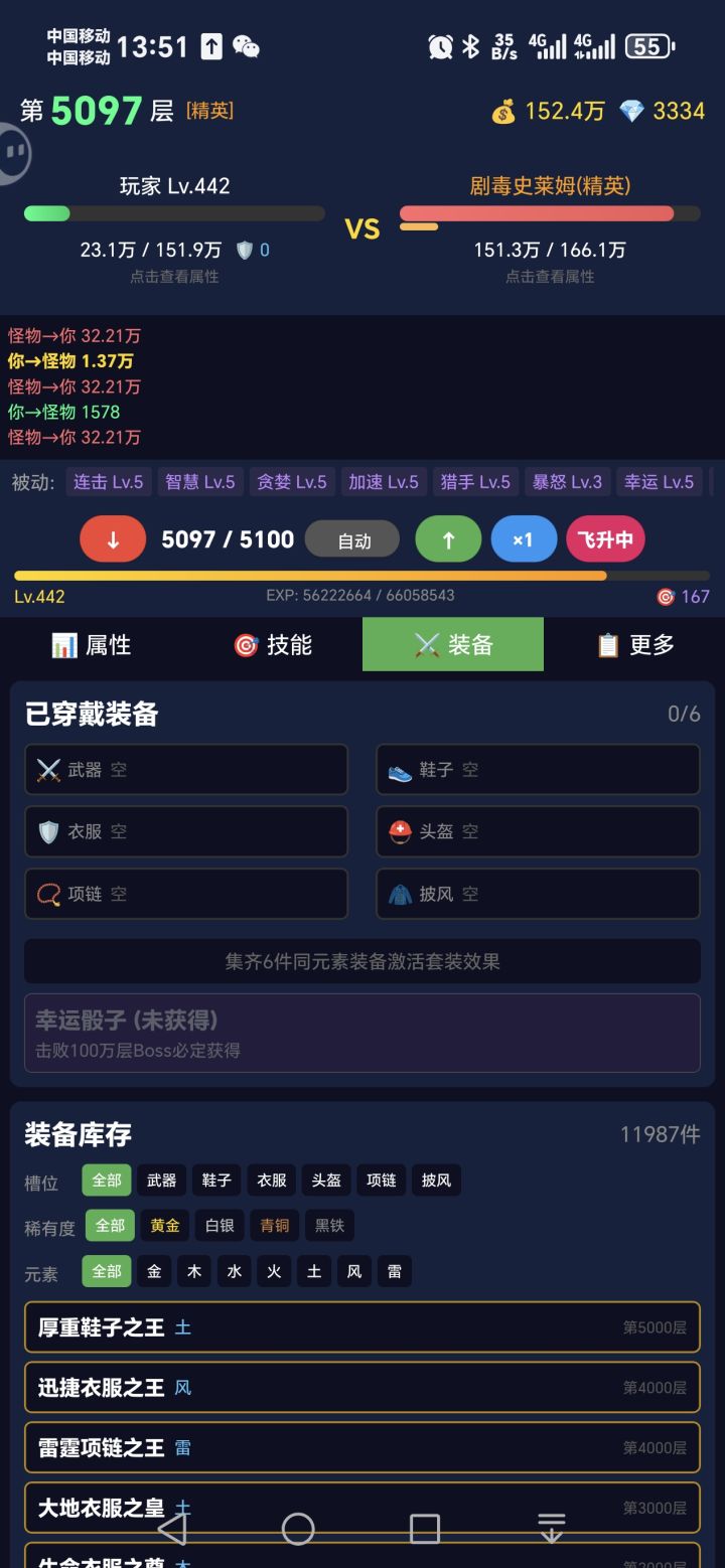 改版后只剩下爆伤属性能冲高层了,怪动不动就是千万攻防破甲,无敌+连击暴击才能稳定升层