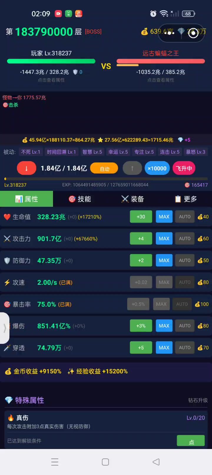 今天特意开了个新号去测试反伤流的极限然而,新版虽然限制了反伤的最大伤害但还是扛不住属性的成长速度