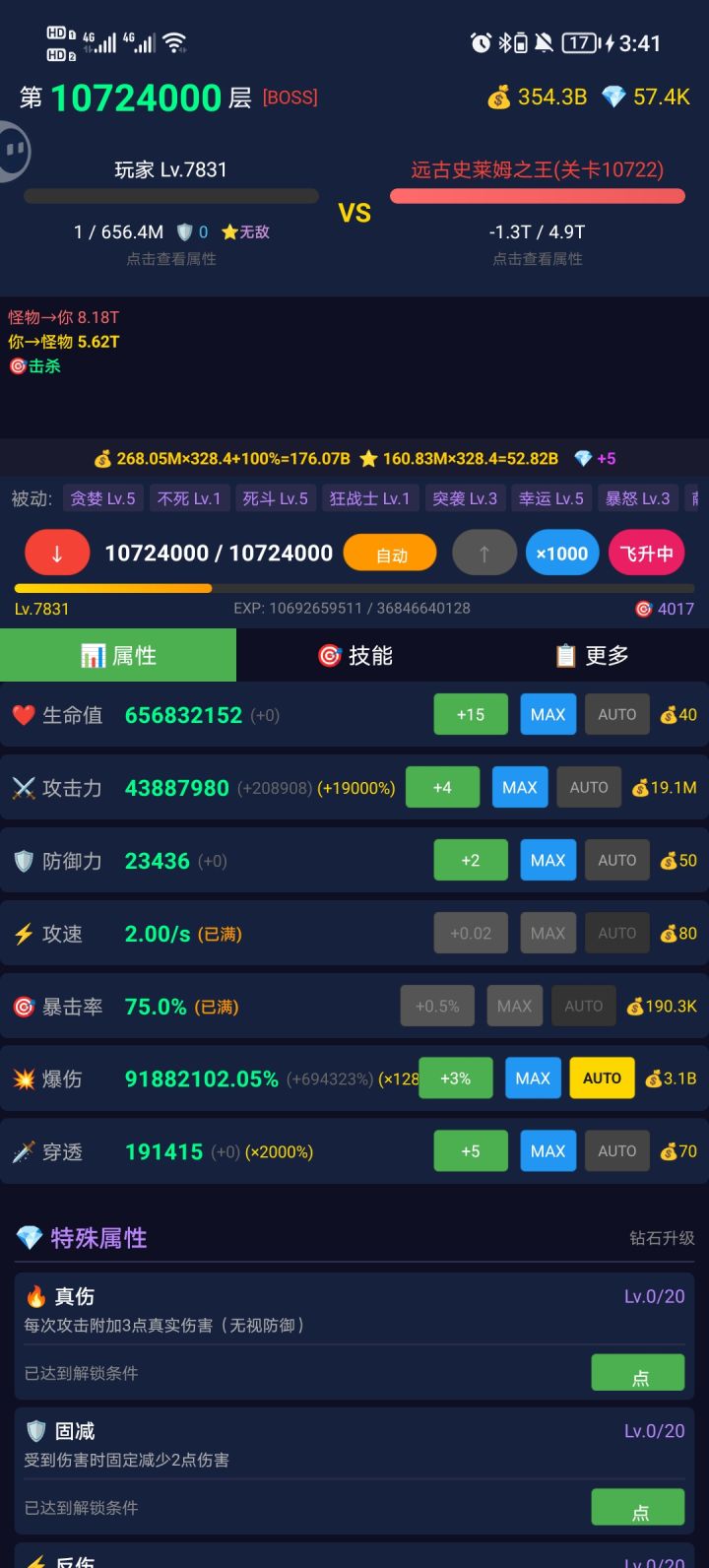 改版后只剩下爆伤属性能冲高层了,怪动不动就是千万攻防破甲,无敌+连击暴击才能稳定升层