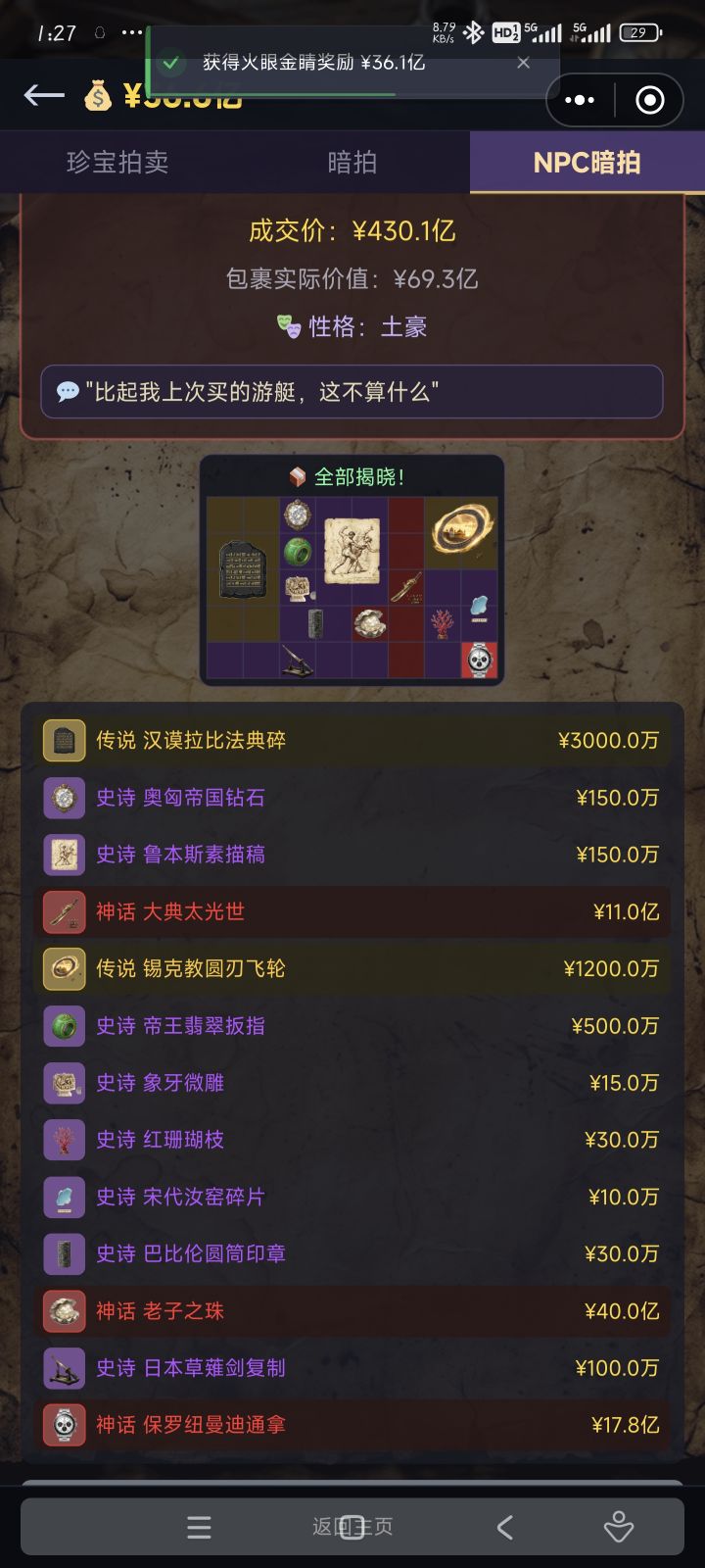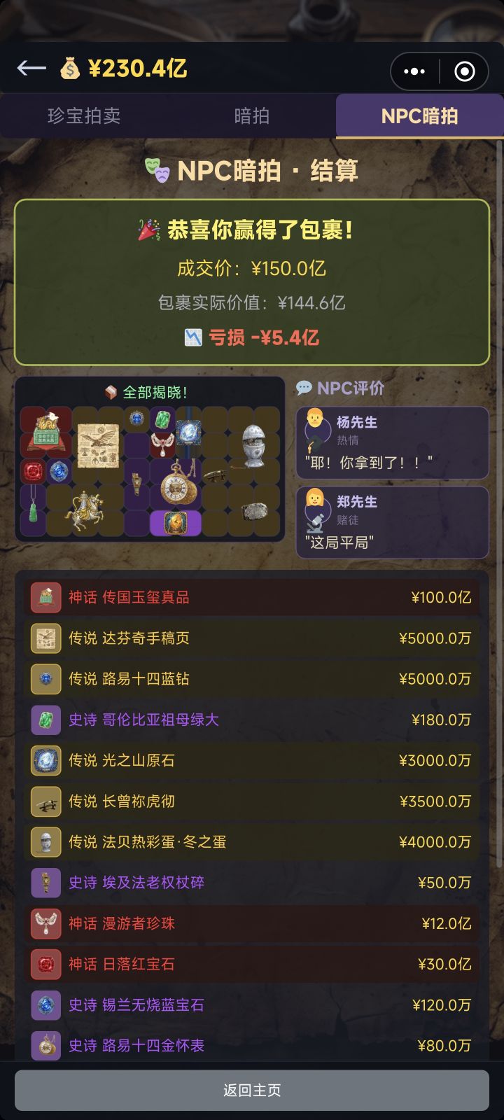 💡游戏创意:暗拍玩法里的心理博弈和对拍品的推测也特别有意思,总是让人忍不住想再试一次;