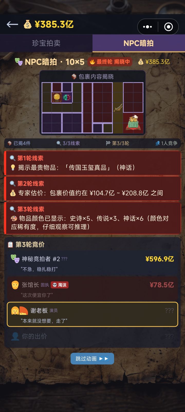 本来广告看完十个起码四个看完要重启,我都不在乎了,因为玩暗拍很上头,但是刚刚一连五个看完都要重启,崩溃了,买又买不起多少个,看广告看了也拿不到门票……能不能把门票改低点啊,5亿一张盖逐步提高,真的买不起,几次都不一定遇上一次能出高价的,溢价三四倍的,想拍也拍不了……