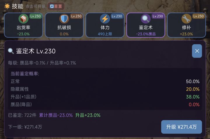 从我升到加起来一共100%的时候就有这个疑问了,只有升品在增加,但赝品已经是0%降不了了,不应该继续降低正常的概率吗?