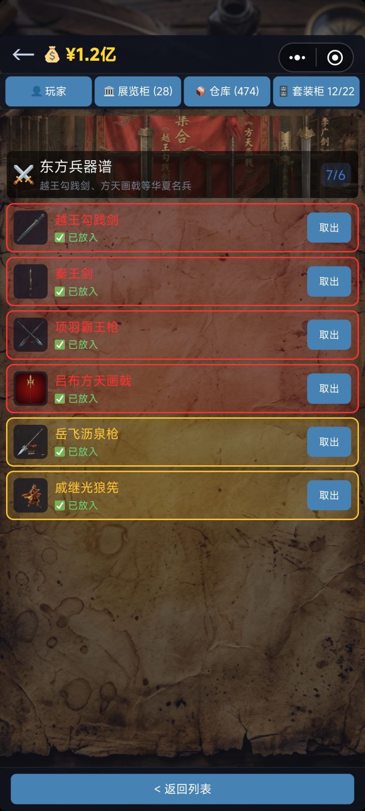刚玩第二天,今天更新了两个内容,真的好使。提个建议:套装,能否在“获得的时候”和在“仓库的时候”,也显示一下有几件。本人强迫症,每次看到套装都要确认一下,这件是不是已经有了