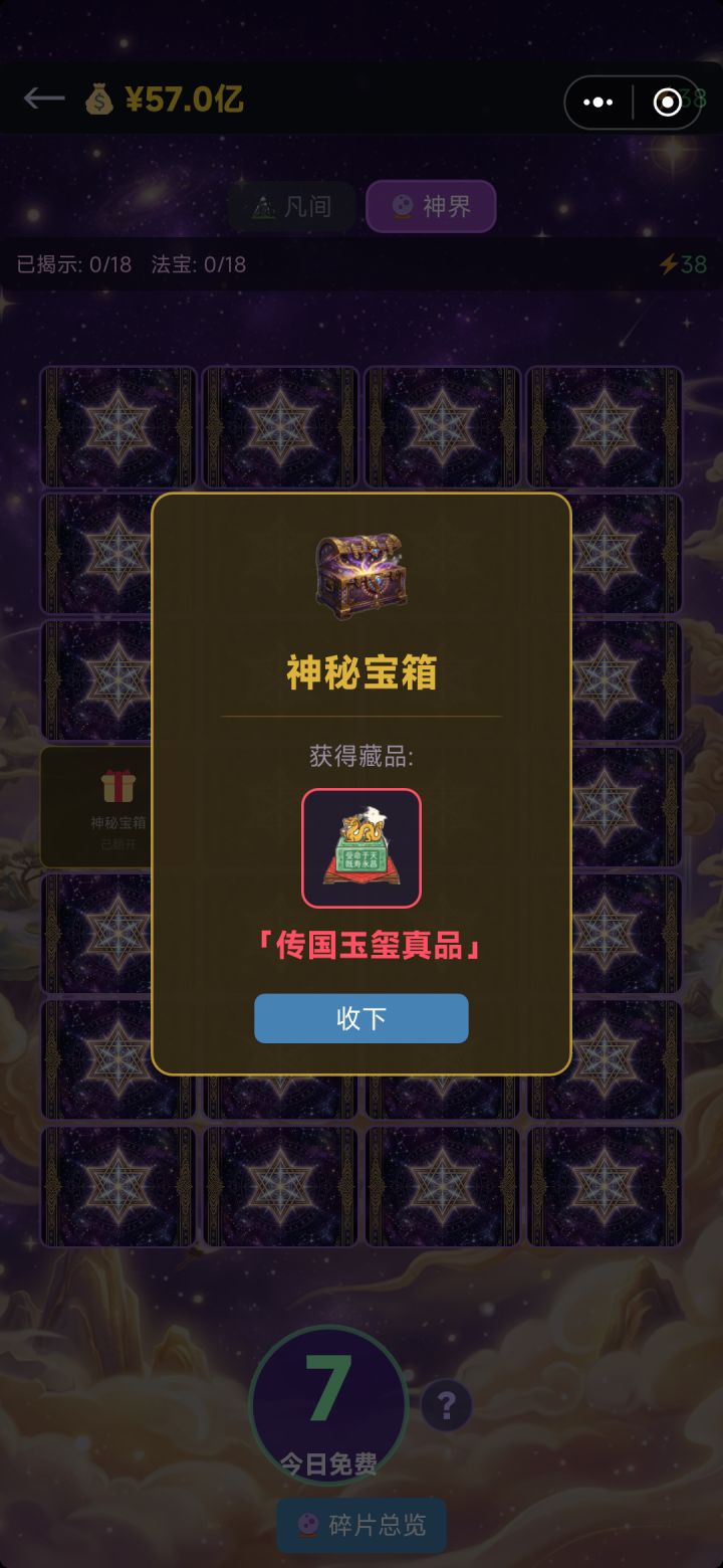 新手要避雷,刚玩一两天,有点肝啊,看广告30个。肝不动了,新手前期第一波看神界的探索,运气好能10次免费抽中紫的、金的,红的不知道有没有反正我得的是金色,价值4000多万,然后开启上古秘境,不然从菜鸡刷起不知道刷到什么时候。然后就是神界的图真的是非常肝,傻兮兮的开了个全日免票……五亿打水漂……新手建议多刷上古,以后每天拿一亿当门票,后期有千亿万亿的时候,搞死他们。还有建议每样都200级,再去,多一