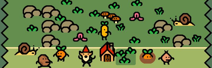 Your garden is under attack! As a garden gnome, you grow and sell various vegetables to create an army. You'll pull out weeds, water plants and fight worms as you go through this year's seasons....