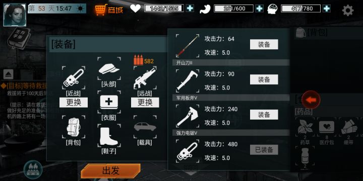 还不错,全部都通关了,最后一关,在55天之前就做出了满级强力电锯在60天之前做出了满级m4a 1在70天之前就把所有关卡打完了遇到了第65天的杂货商人,千万不要手软,因为第75天,第85天和第95天全部都是零件商人,所以在65天的时候多保留一点食物和实力接下来就直接睡到第100天(准备好,至少1600发子弹这里我只准备了800发npc死伤大半,后悔死了)遇到丧尸狗最好直接使用大量子弹,迅