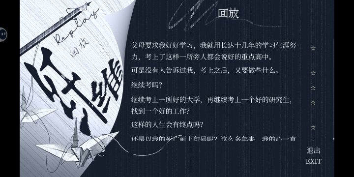 好真实,游戏里的每一个片段都好真实。切切实实地发生在无数个高中生身上。怎么说呢,希望大家放过自己,也希望世界放过大家。祝前程似锦,一帆风顺。