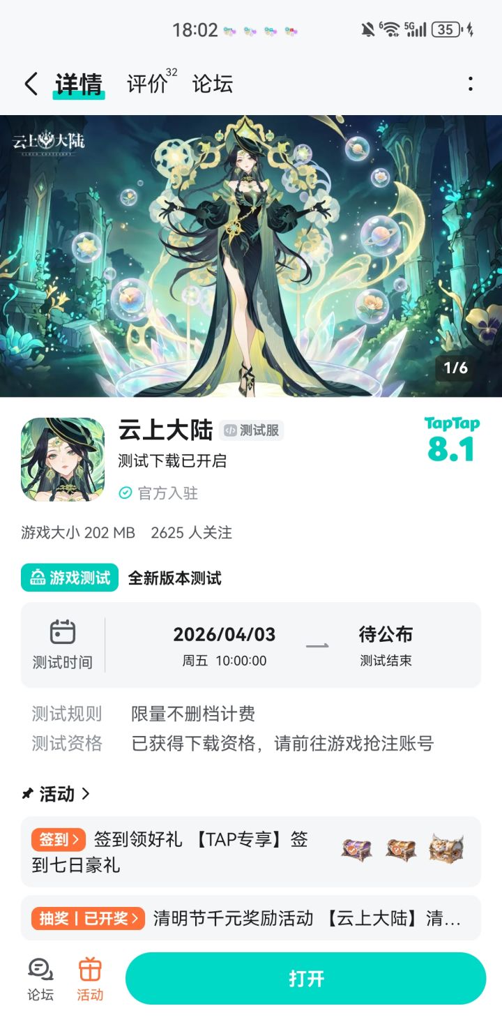各位云上大陆的冒险者们,春风拂面,清明将至。在这缅怀先人、踏青寻春的传统时节,云上大陆也迎来了专属的清明主题活动!我们将从所有参与活动的玩家中,抽取10位幸运儿,每人直接赠送 价值200元踏青大奖!愿这份春日的馈赠,伴你在云上大陆的旅程更加精彩。清明雨上,春意盎然。让我们一起在云上大陆,追寻春的脚步,收获属于你的幸运吧!【活动奖励】踏青大奖:气息·时光幻铃【橙】 X 1【参与方式】回帖