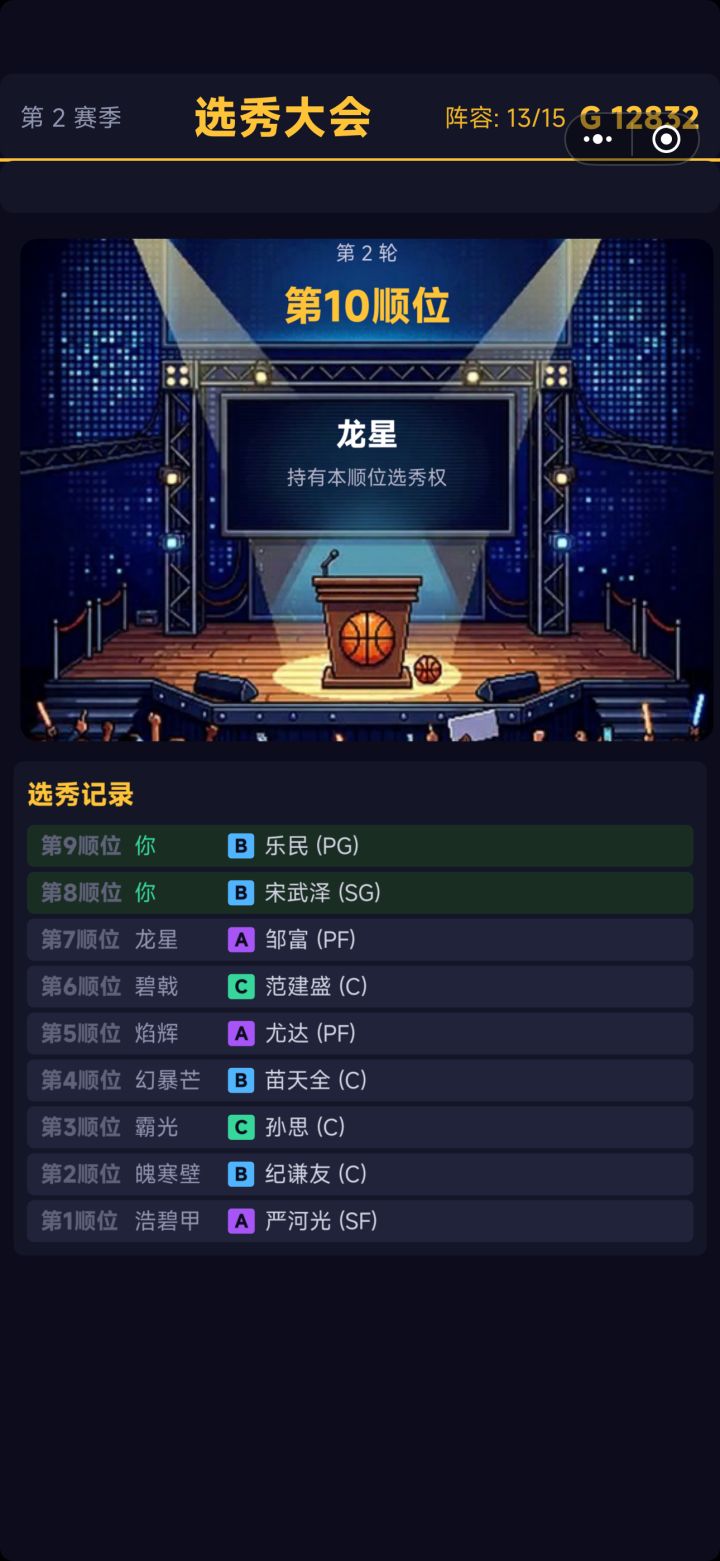 大前锋经常不得分,篮板也抢得比后卫少,感觉很废物,应该优化,加上身高数据,让身高更高的能抢到更多篮板