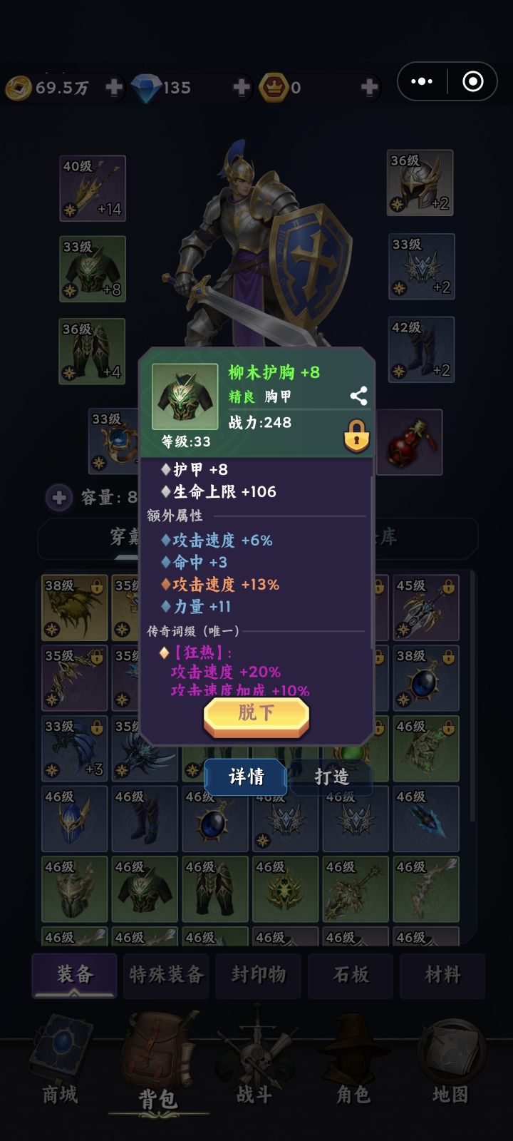 77级60级怪就打不过了 出个疯狂BOSS无限死 搞不懂低级图为什么刷属性这么高的怪 都破不了防 低级怪还经验递减 做的挺绝的
