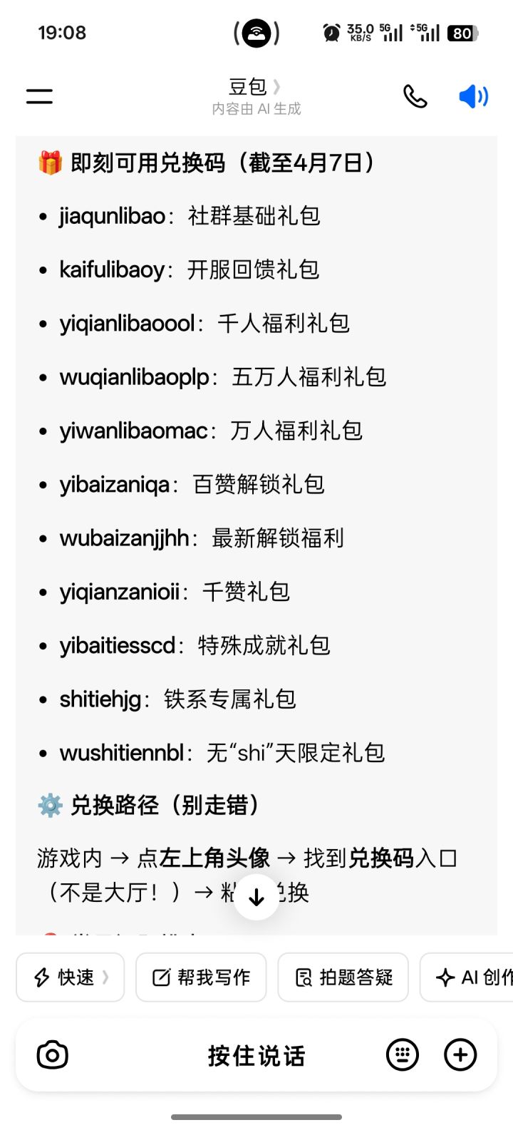目前全兑换码