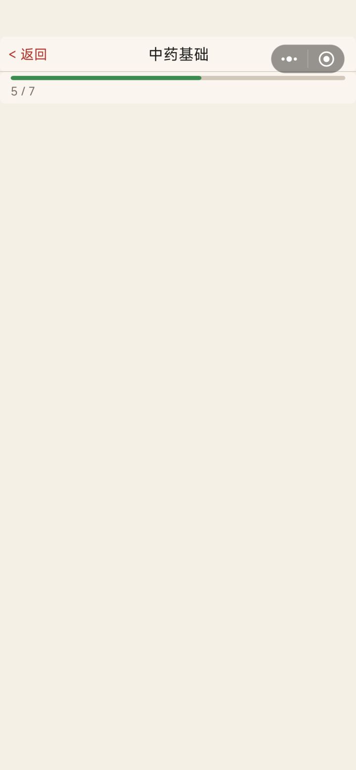 中药基础答题bug,到这里就空白了。进行不下去了。希望早日修复。