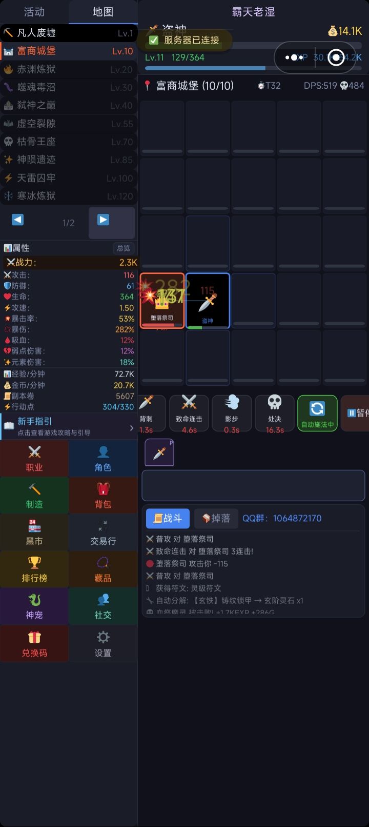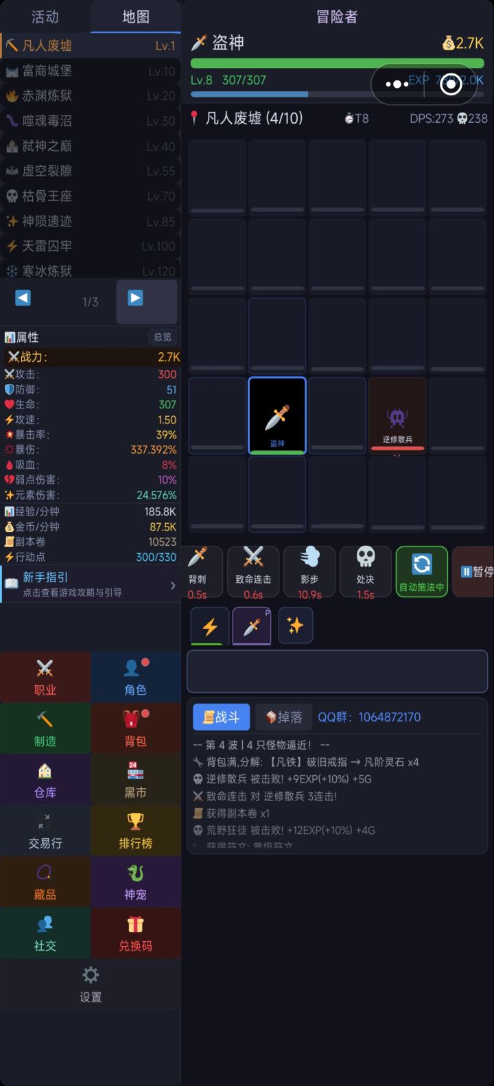 休闲娱乐,可以自动挂机,上班摸鱼的好游戏,玩了一会目前感觉内容挺丰富的