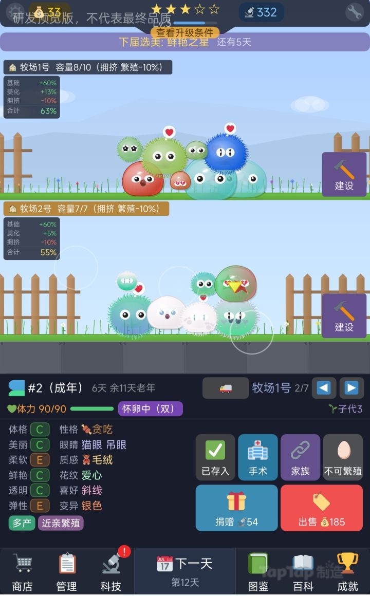 官方烧瓶斯基 : 震撼,俺寻思一下怎么改。原计划其实有你说的浏览全部史莱姆进行选择的功能,但是底部菜单栏放不下。而且我本来想所有牧场加起来也就40只顶天了手动挑选也还行吧所以就去掉了那个功能。。。但是看来还是需要啊。。。不过史莱姆整体数量上限看来还是要限制一下的,不然玩到后面一定会卡。。。估计之后的版本就没法同时那么多史莱姆了😂