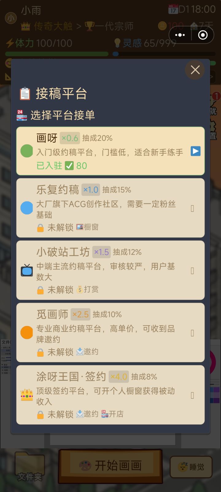 增加了接稿平台,可以慢慢解锁了(名字和谐了一下)小画家的板子电脑笔这些可以升级了!免广卡和广告上个版本都没有实装,这个版本修复了这个问题,老玩家没有受影响(当福利了)