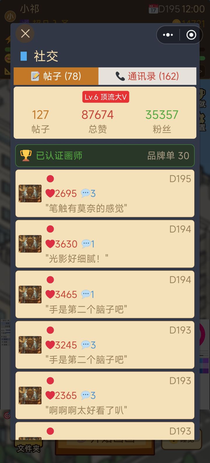 玩了档简单开局感觉难度还行就又试了试天崩开局,结果刚点上睡觉就弹结局了这十天一直在速写+接单轮换着来,灵感跟心情全靠家具回复,每天都是消耗到个位数体力心情才休息,然后就成这样了