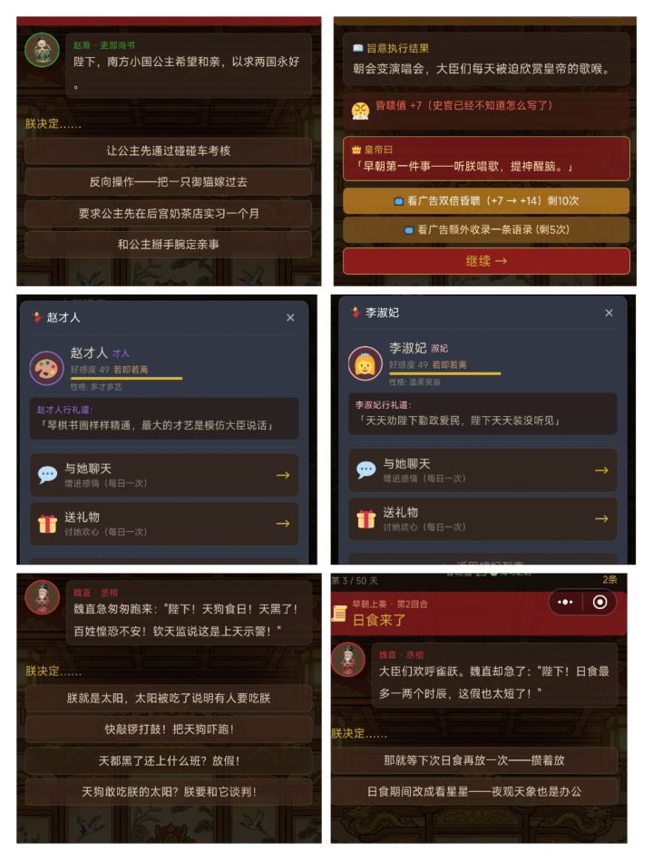 文案简直神金(褒义),在其他皇帝模拟器中做昏君,在这个昏君模拟器中努力找最优解做好皇帝(逆反心理ing),挺有趣的,就是有的界面不能下滑