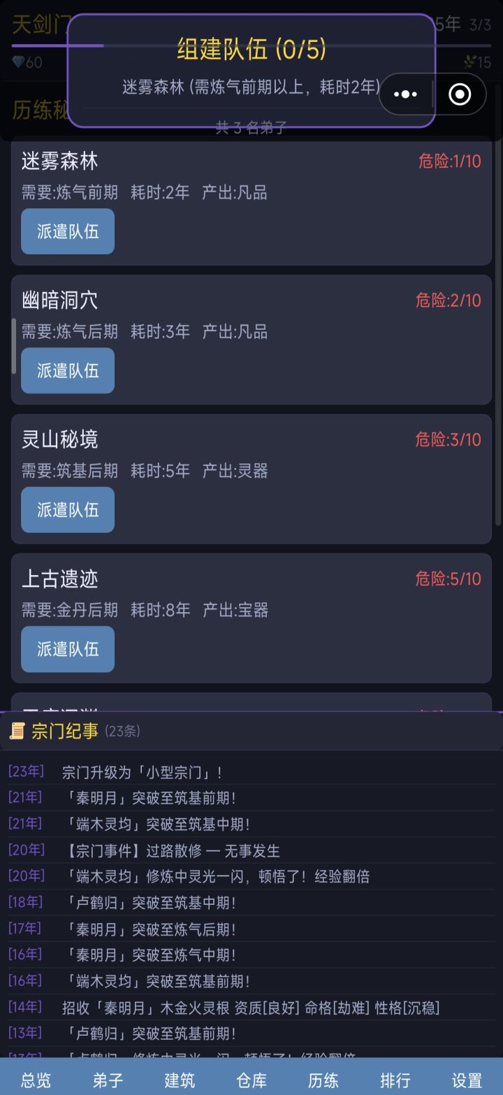 体修:9大境界27级,与灵修并行道侣灵胎:异性弟子自动结缘,可诞下后代渡劫飞升:灵修+体修满级后渡劫,成功入半仙轮回重修:半仙可轮回,保留10%属性变异灵根:6种变异灵根,异灵丹升级长老殿:设置副宗主和长老,加速修炼【系统改进】秘境重构:灵根/灵石秘境各百层排行榜重构:宗门排名+个人弟子排行历练支持多队伍同时外出装备炼制可概率出极品属性新增洗命丹/洗性丹/阴阳转换丹【体验优化】