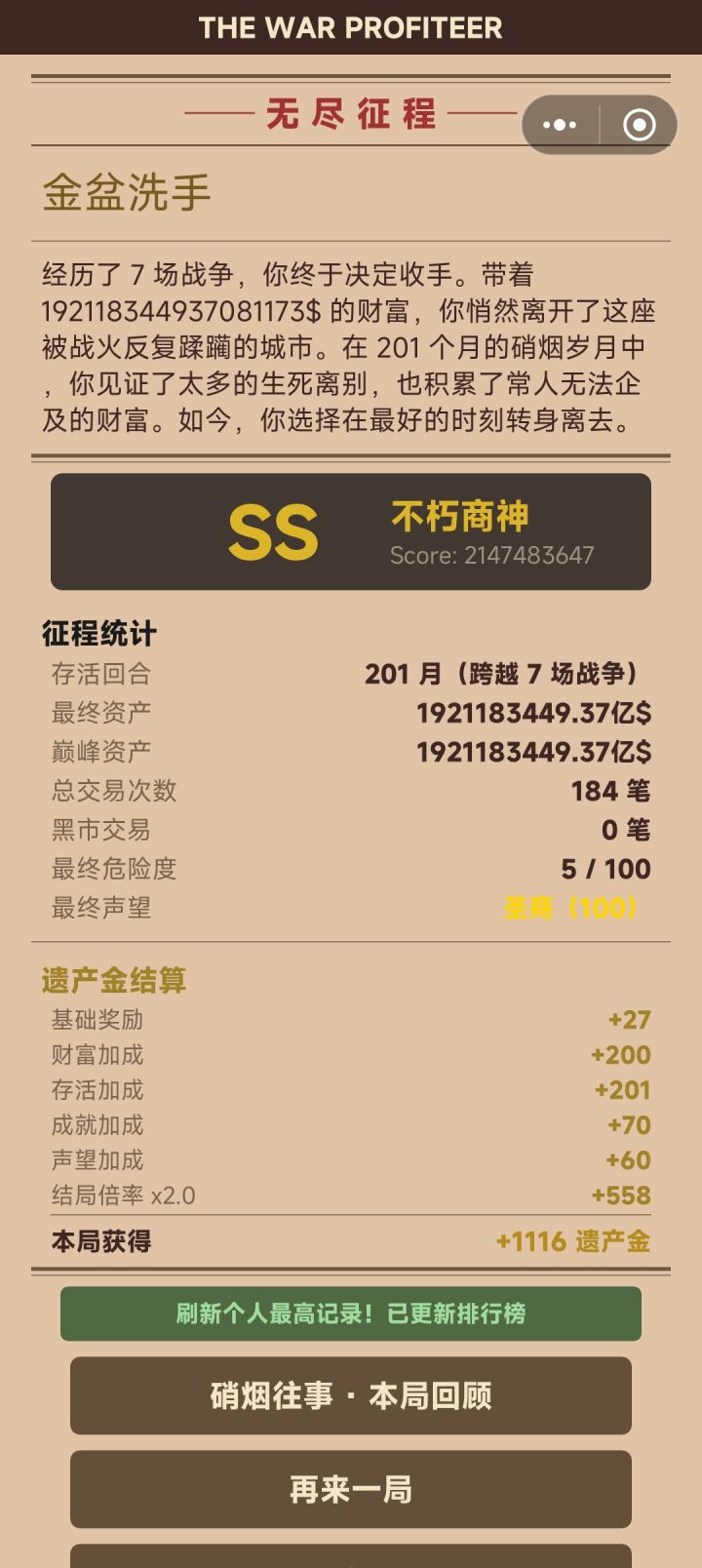已更新调整1.新闻叠加效果。(已移除)2.修护商人跳水结局的遗产金计算方式。(已修护)交流反馈可加Q群答案:TapTap