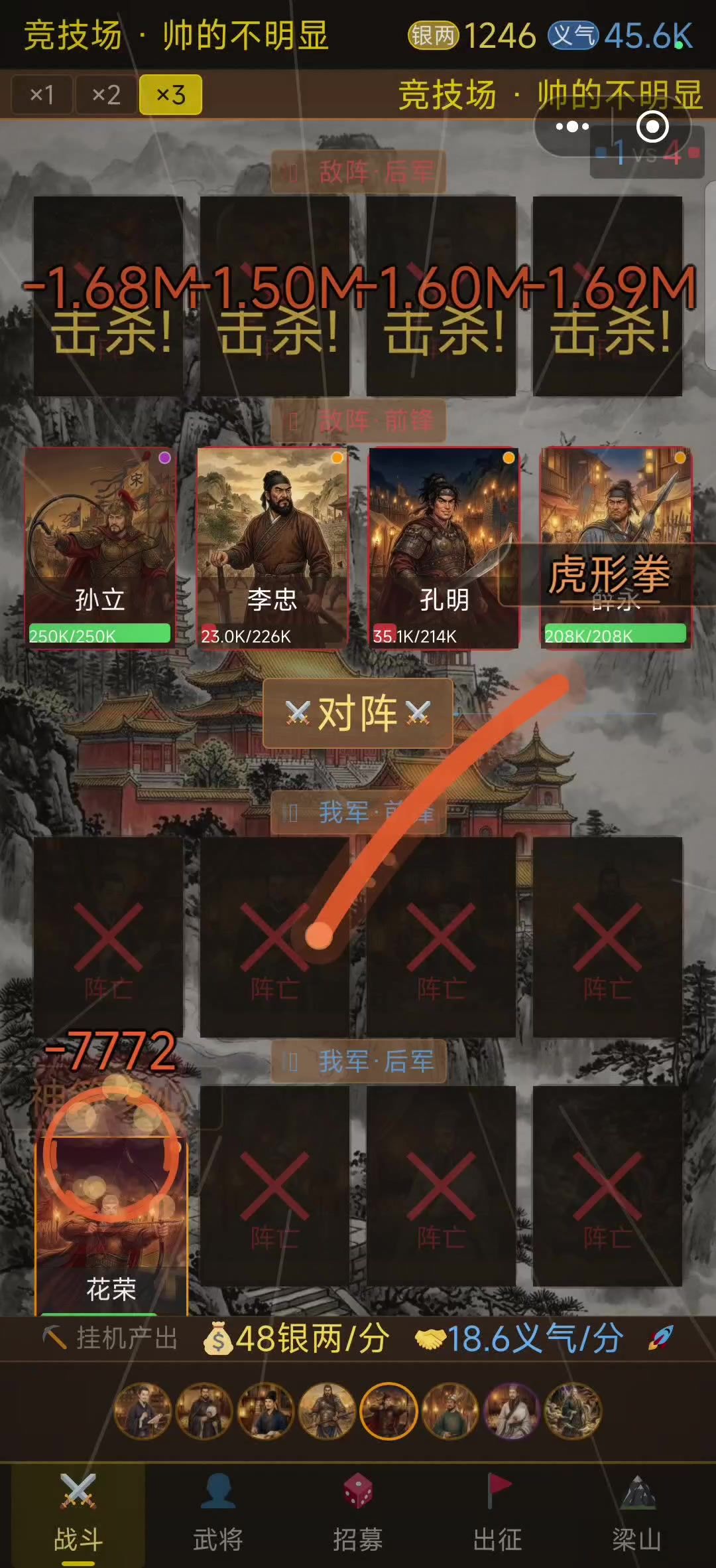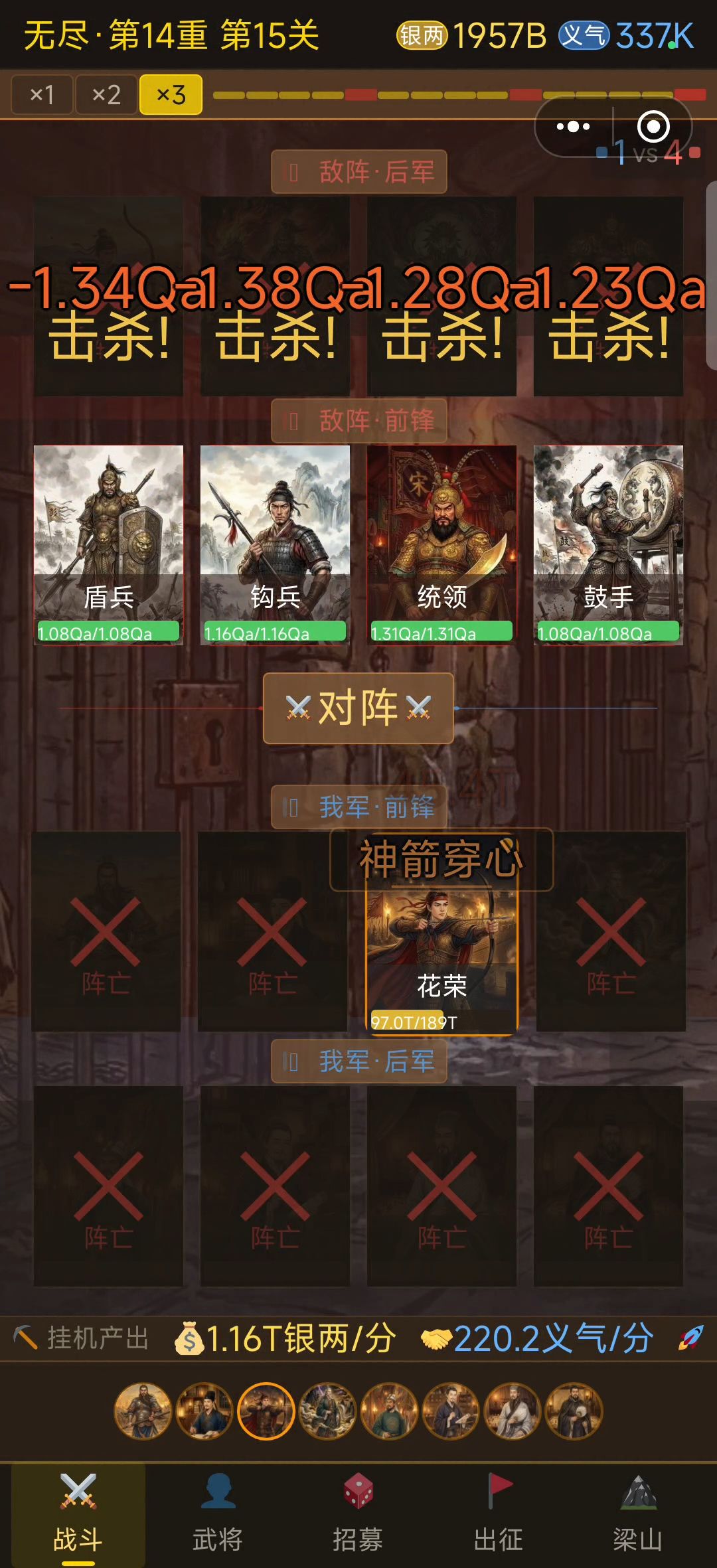 大家好,我是游戏研究家江小鱼。 游戏的第四天打到了无尽第五重,打不过就挂机,后期日常被秒,后排被一个大招,前排被一个大招,游戏结束。 点赞过一,更新阵容推荐和玩法窍门。