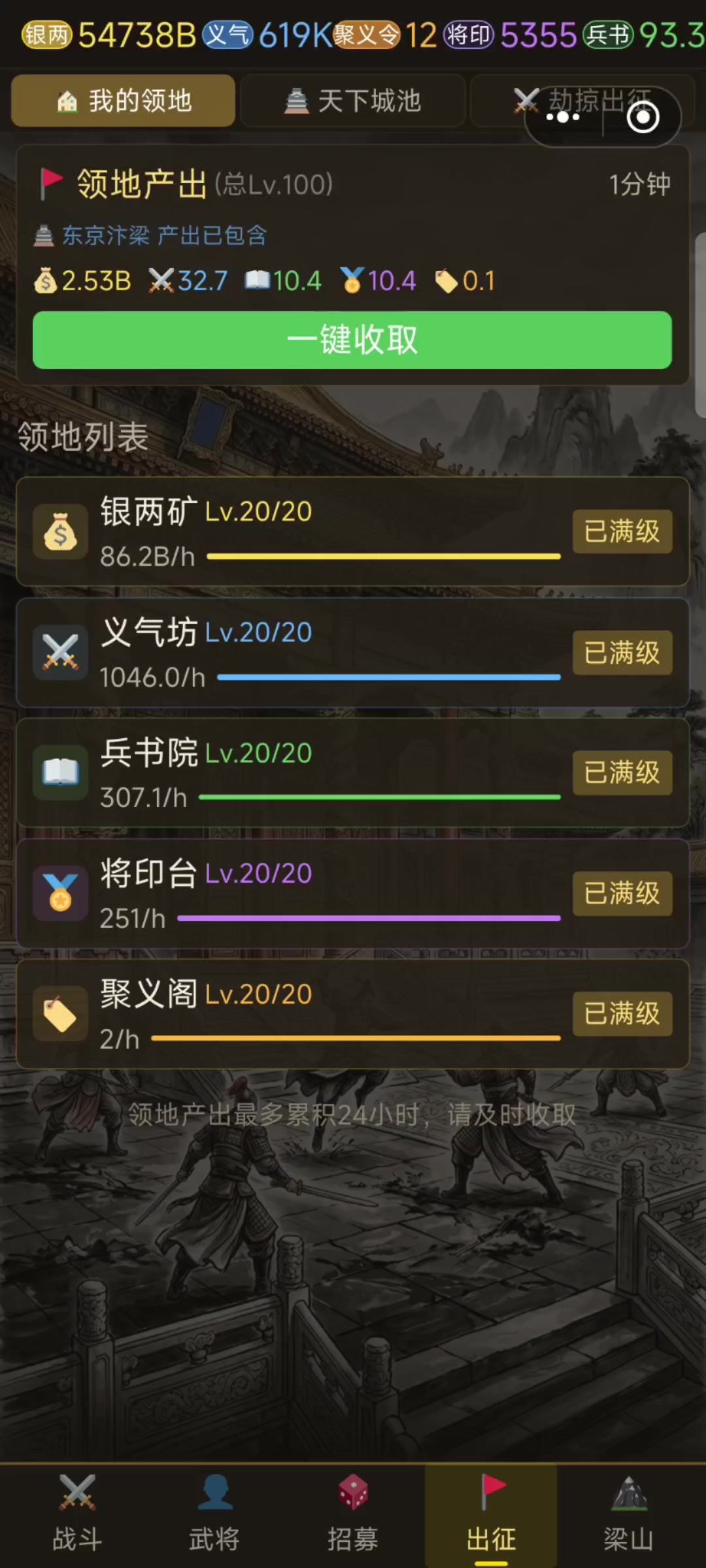大家好,这里是江小鱼,上次视频点赞数过1,继续给大家带来《水浒:梁山聚义》的内容。 首先告诉大家一个不幸的消息,在现实中,金钱不是万能的,可没有钱是万万不能的,本以为在现实中失败,游戏中可以找到补偿,却发现游戏中钱也是最重要的。 这个游戏不用花钱,只要挂机,但可以看广告增加收益,比起taptap制造的其他游戏已经很好了。看着一堆什么义气,将印,兵书,都没用,有用的只有银两,一句话讲完了:千方百计赚