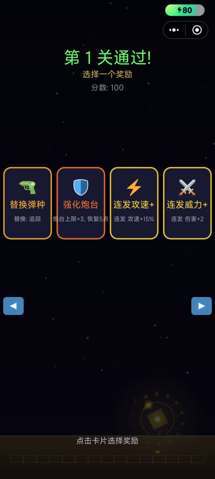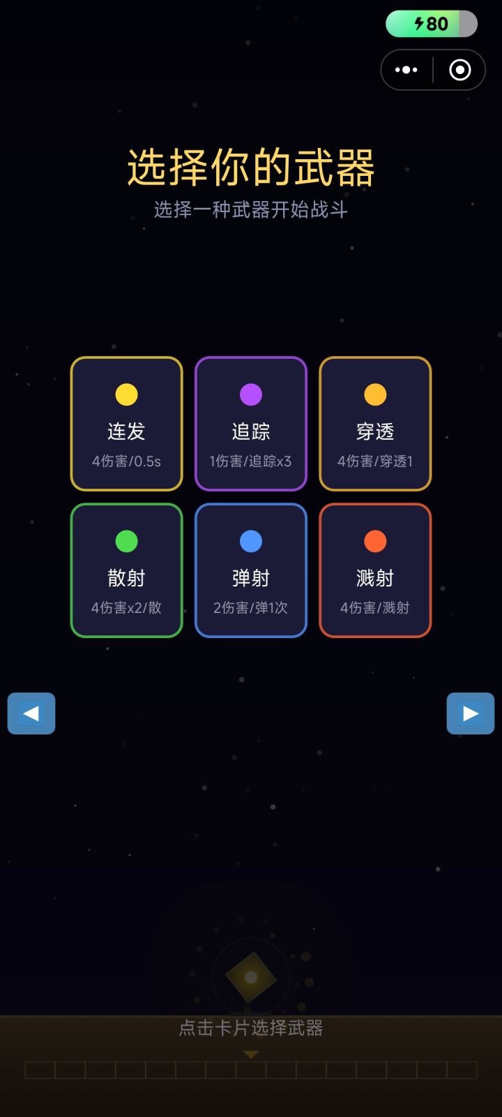 竖屏肉鸽射击游戏,和消灭病毒有点像,敌人从上方向下攻击,可操控小方块来进行防守,若小方块血量归零则游戏失败。小方块攻击是全自动化的,只需控制左右走位即可,没做基础操作介绍,摸索下也能很快上手。