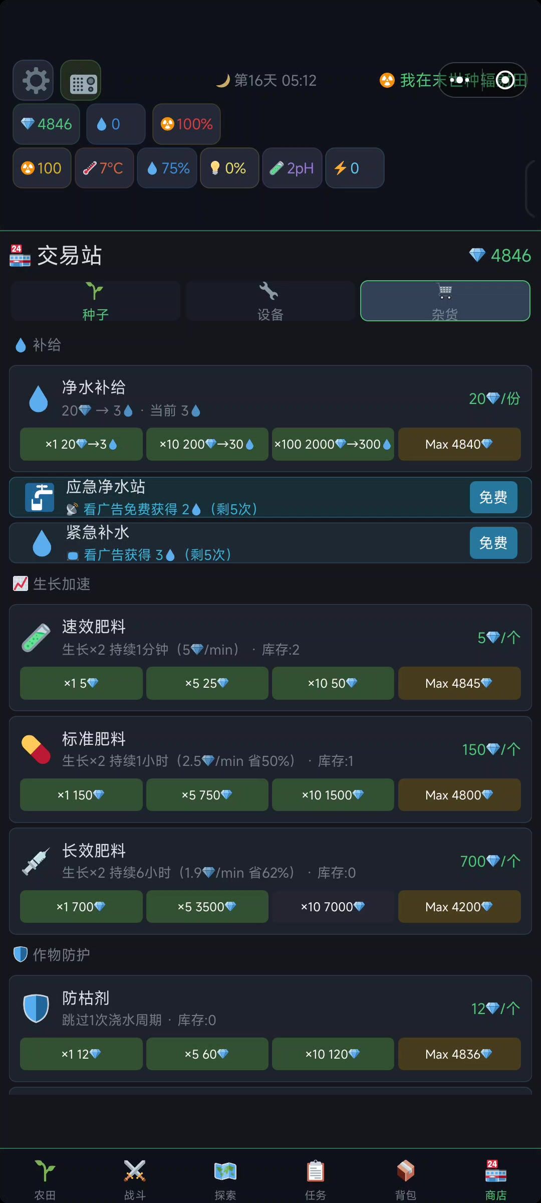 不管买多少水都直接清零,我刚开始有好几百呢,种个种子浇不了水,我以为只是用完了好几千的钻石买水都是直接清空
