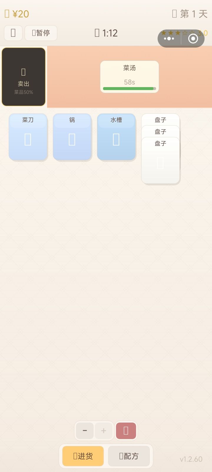 4.如果便利性上涨之后怕可玩性降低,可以搞一个开餐后无法暂停的模式,但备货不显示(时间无流动)