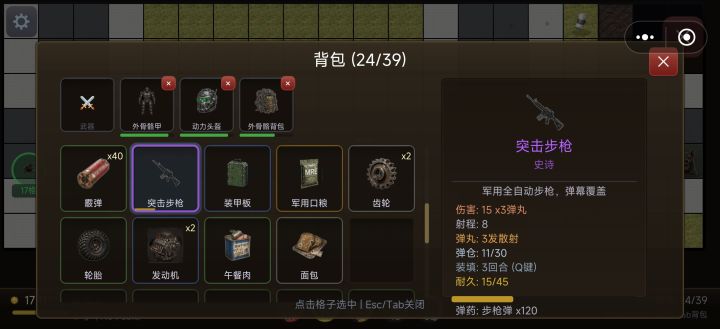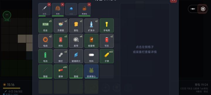 搜打撤与生存模拟的规则融合,体验层感觉有点像活下去。出门需要携带一些必须道具,包括武器和食物、水等物品。战斗消耗武器耐久度,破坏场景设施同样消耗耐久,面对不同破坏目标有武器选择策略。战斗以回合制进行,每个回合都需要谨慎选择应对策略,有站位技巧和可操作空间。搜索过程中会有敌人出现,战斗一旦死亡,会掉落背包和身上所有物品,增加了紧张感的同时也让策略选择时更谨慎。